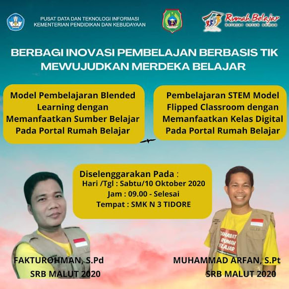 Setelah persiapan semua oke tiba deh saatnya berbagi bersama guru guru hebat SMKN 3 Tidore Kepulauan kegiatan tepat di tanggal 10 Oktober 2020 pulul 09.00 WIT,kegiatan di buka oleh Bapak Kepala Sekolah dan dilanjutkan materi pertama oleh Bapak Arfan, setelah semua kegiatan berjalan dengan lancar selanjutnya kegiatan dilanjutkan dengan materi pemanfaatan sumber belajar pada portal rumah belajar oleh admin nie sahabat, disini admin berbagi bagaimana cara membuka fitur sumber belajar pada portal rumah belajar,dan bagaimana cara mendownlod sumber belajarnya sahabat.